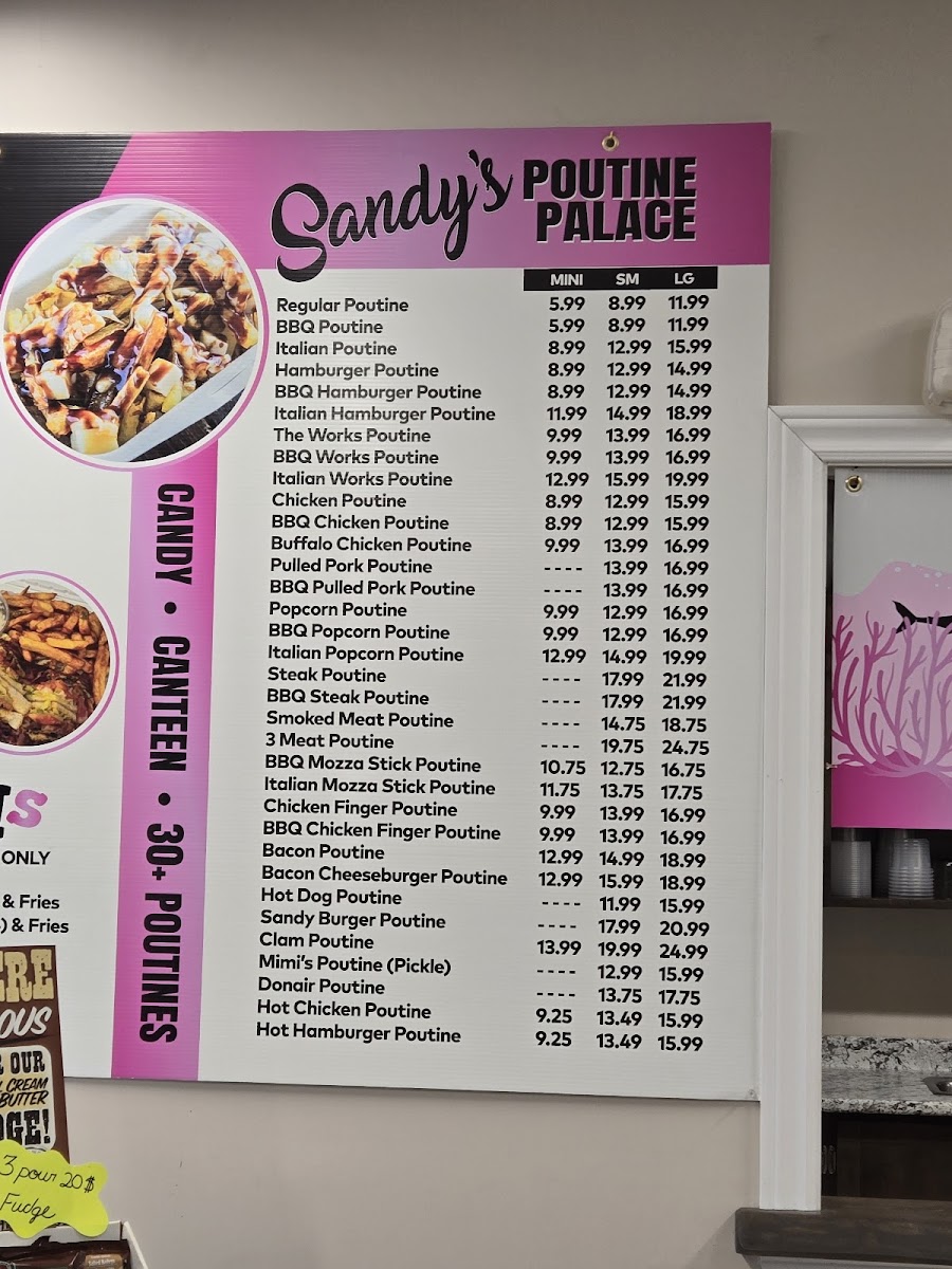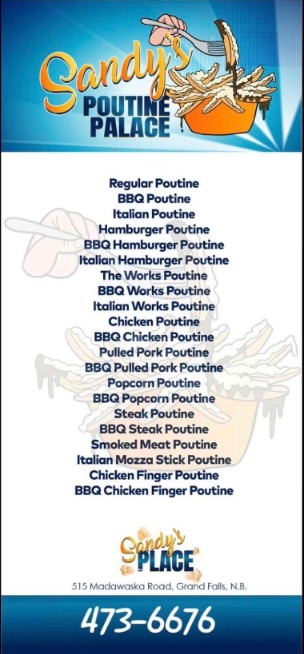 Welcome to Sandy's Place, a charming restaurant nestled at 515 Chem. Madawaska, Grand-Sault, NB. Celebrated for its nostalgic diner vibe, this eatery captures the essence of classic comfort food with a delightful twist. The menu shines with an impressive array of poutine options, including Regular, BBQ, and Italian variations, ensuring every craving is satisfied. For those craving something beyond poutine, delectable chicken strips, cheese sticks, and mouthwatering burgers await. Guest reviews highlight the generous portions and the scrumptious gravy, a must-try for anyone visiting. Whether indulging in a refreshing seafood platter or the revered Sandy burger, each dish draws patrons back for more. The inviting atmosphere is conducive to family dining, with ample space for pets and kids. Also, don’t overlook the tempting cheesecake selection—it’s a sweet finishing touch to a satisfying meal. Sandy’s Place is truly an unexpected gem on your journey.